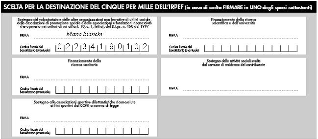 MILLE DELL’IRPEF”, il codice fiscale, il cognome e nome del contribuente.